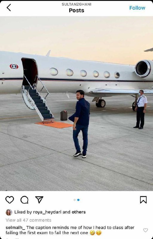В той час як Афганістан колапсує, племінник президента Султан Гані публікує в Інстаграмі фото, як він сідає на приватний літак і пише: «Рухаюсь від одної кризи до іншої так елегантно як можу».
