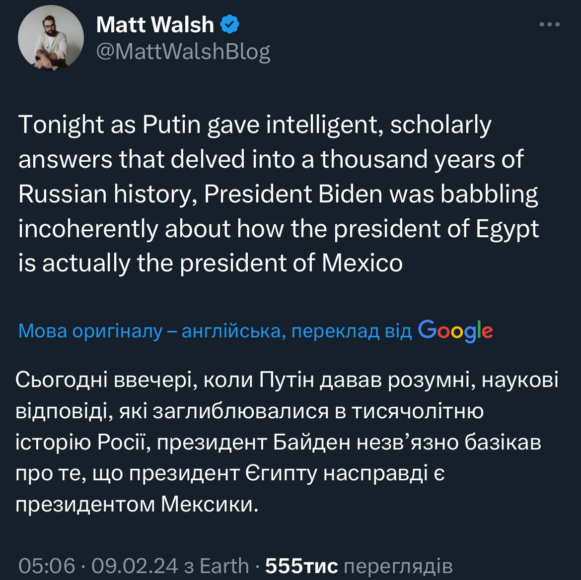 Але він їм навалив хуйні про Рюрика і австрійський генштаб і вразив своєю «ерудицією» лише Метта Волша з його латентними бажаннями завести собі сильного мужичка 😂