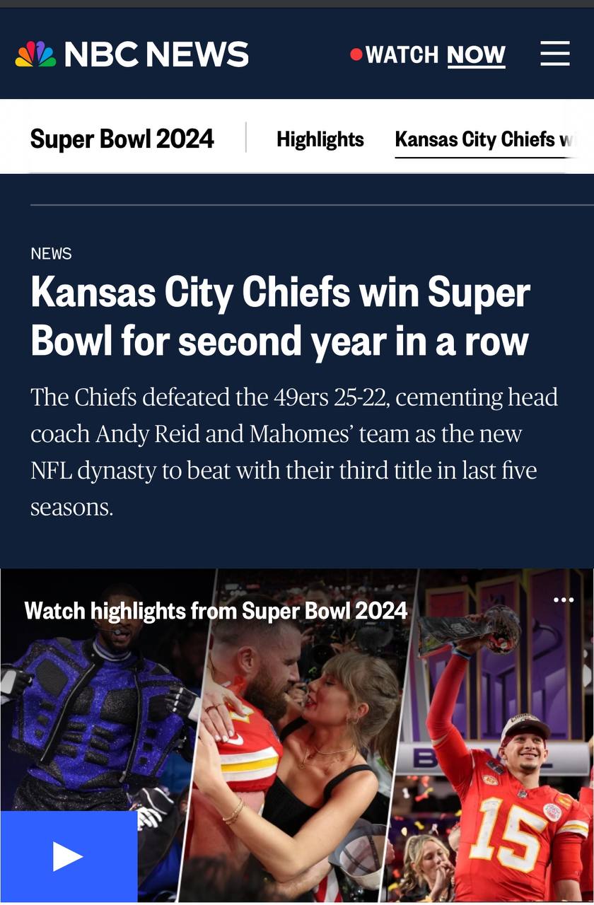 Канзас Сіті Чіфс, де грає хлопець Тейлор Свіфт, виграли Супер Боул. У МАГА траур, але хто ж йде проти Пентагона, йолопи? 😂
