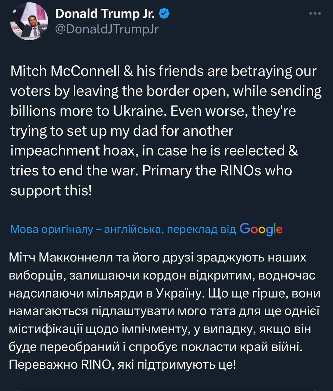 Нарешті є план від Трампів як закінчити війну: перестати давати гроші Україні.