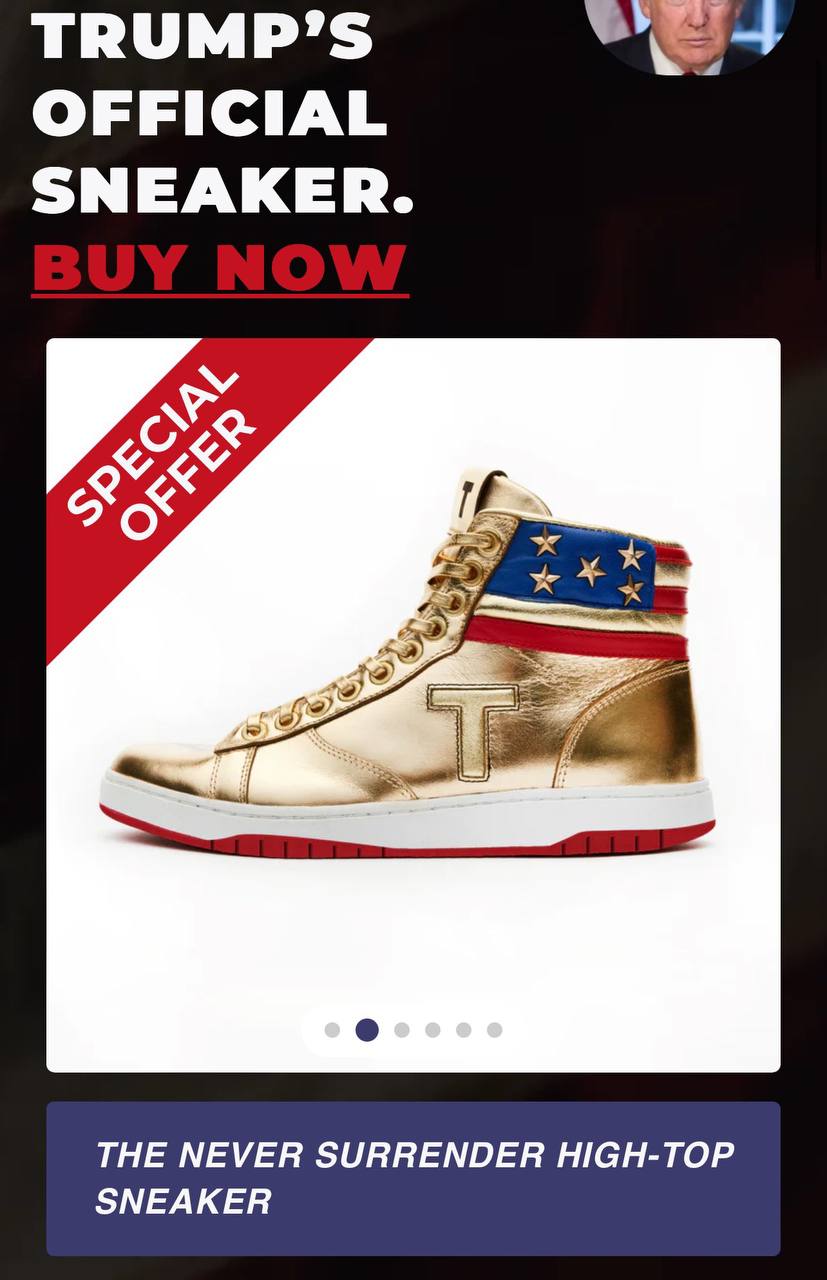 Трамп вже кросівками торгує. Якась місцева русня то навіть купляє 😂