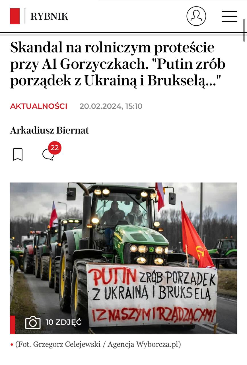 «Дуда наголосив, що поляки мають право на протест, і якщо він законний, то влада його захищатиме. Водночас він підкреслив, що блокування кордону є лише рішенням фермерів, а не польського уряду».