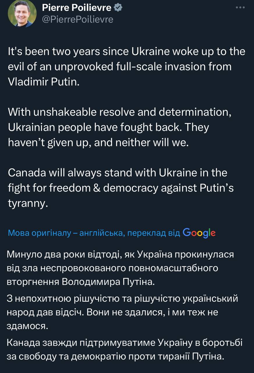 Звернення лідера опозиційної Консервативної партії Канади на річницю вторгнення Росії в Україну.