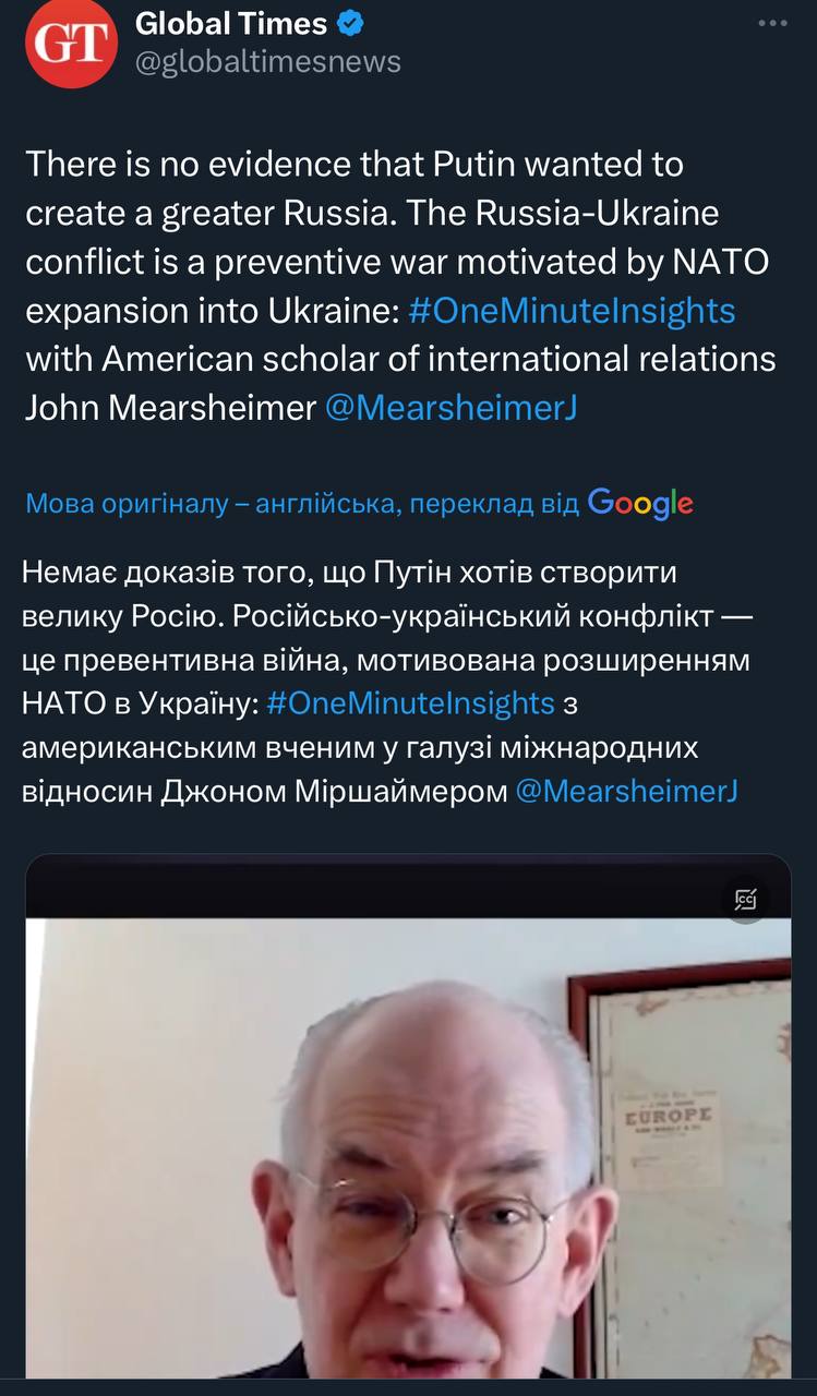 «Світлий розум» і «великий аналітик» Міршаймер: Немає доказів, що Пітун хоче «вєлікую расію». Це все НАТО винне 🤷♂️