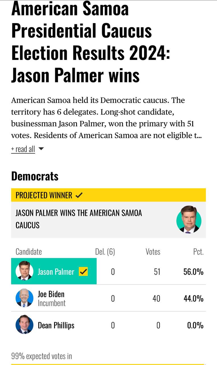 На праймеріз Демократичної партії в Американському Самоа виграв якийсь ноунейм.