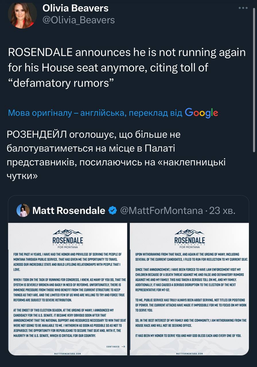 P.S. «Наклепницькі чутки» це усім відома таємниця Полішинеля, що Метт зробив дитину своїй молодій помічниці. Звісно як і кожен поважний МАГА - відроджуватель Америки він при цьому одружений 😂