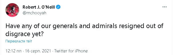 Морський котик, який вбив Бін Ладена, цікавиться, чому досі ніхто не подав у відставку з генералітету за цю ганьбу.