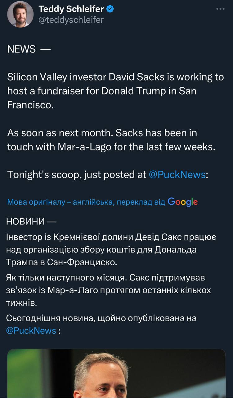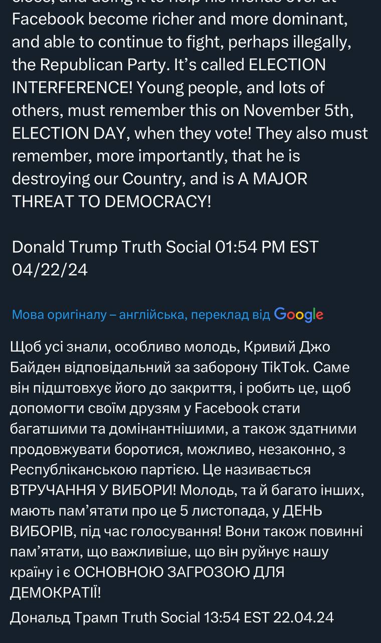 Потрібні гроші від Джеффрі Ясса, найбільшого інвестора в ТікТок, який донатив основним захисникам ТікТока сенатору республіканцю Ренду Полу та представнику в Палаті республіканцю Томасу Мессі. Тепер Ясс інвестує в соцмережі Трампа, а Трамп захищає ТікТок 🤷♂️