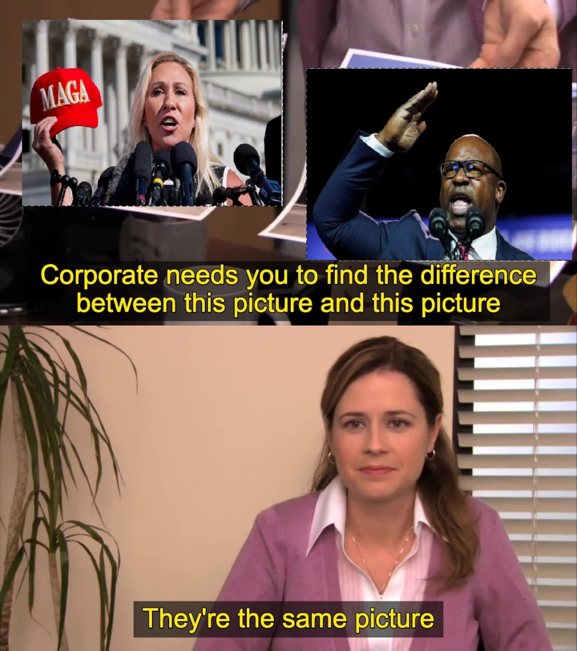 Чому б їм не створити окрему партію? Джамаал Боумен і Марджорі Тейлор Грін кінець кінцем обидва вірять у пласку землю і дивляться відоси Такера про підземних іншопланетян 😂