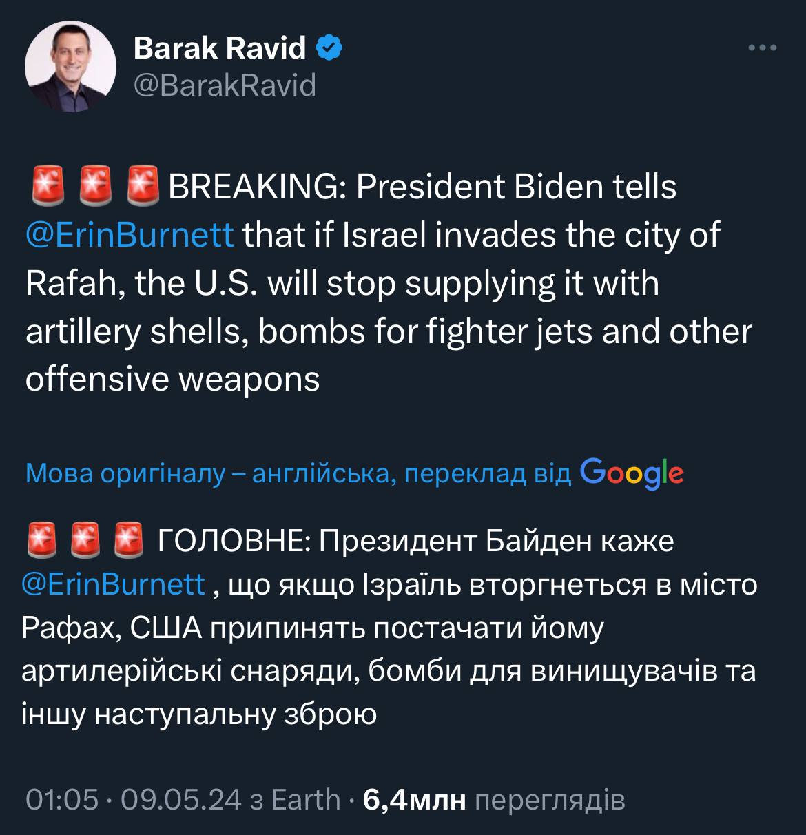 "Хоча помічники Байдена засудили нещодавне насилля в деяких університетських кампусах, самі він фактично не коментував зростання про-палестинських протестів, поки тиск став непереборним. Велике звернення, яке буде у нинішній вівторок було запланованим заходом, яким він мав вступити у дебати, але у минулий четвер він і його команда вирішили, що вони не можуть більше чекати, тому він вийшов перед камери".