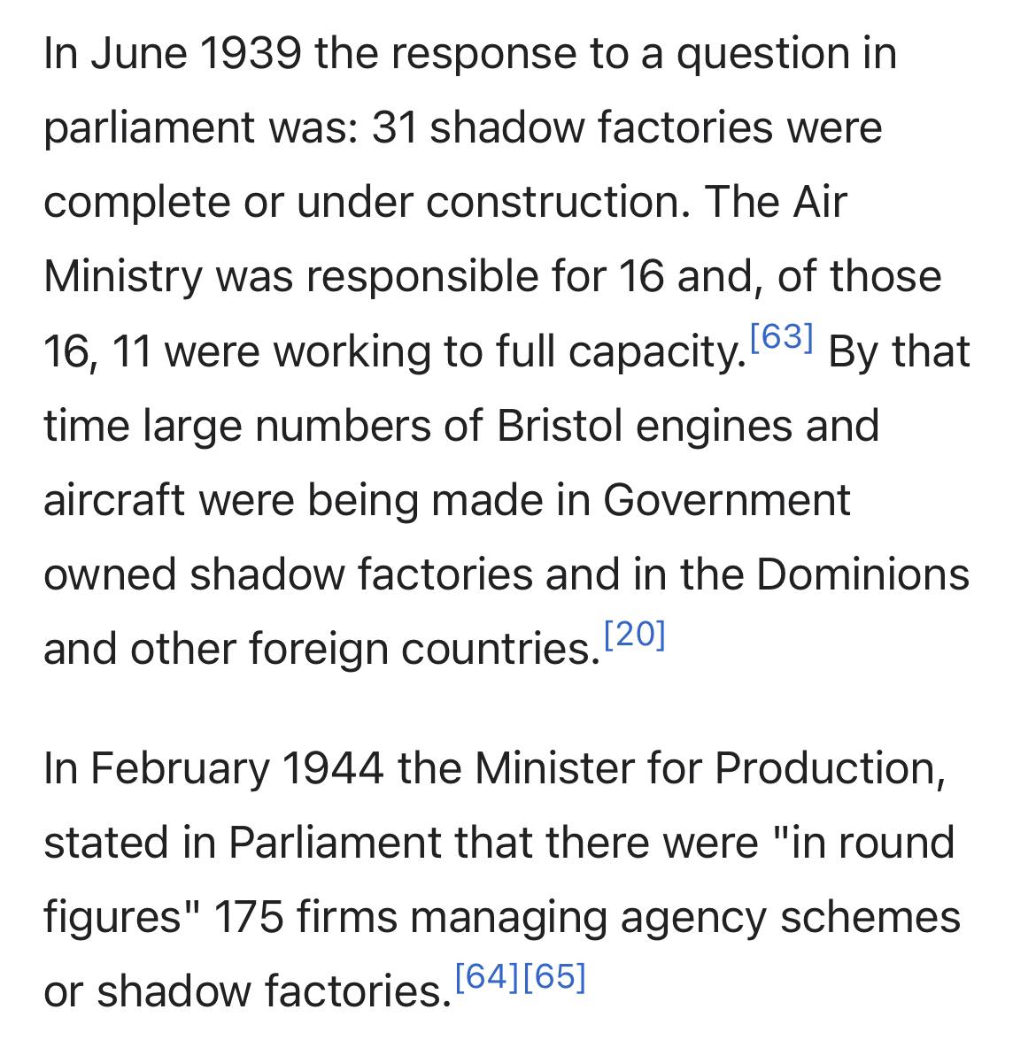 В 1935 році британці почали будувати «тіньові заводи» для збільшення військового виробництва. На 1939 рік 31 завод був побудований або в стадії будівництва. На кінець війни у схемі тіньового виробництва військової продукції працювали 175 підприємств.