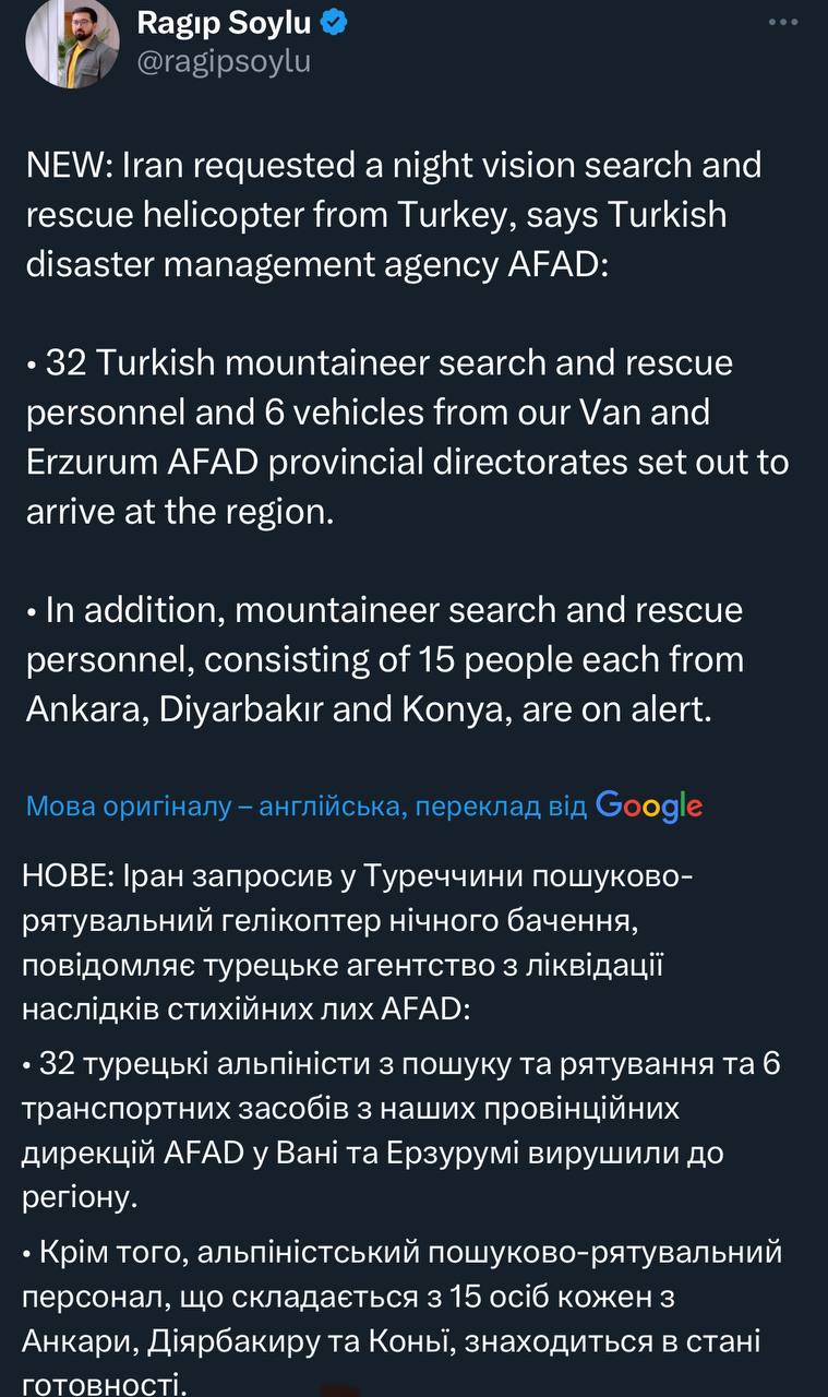 Іранці запросили гелікоптер для нічного пошуку у Туреччини, далеко не союзника. Тобто в самих немає.