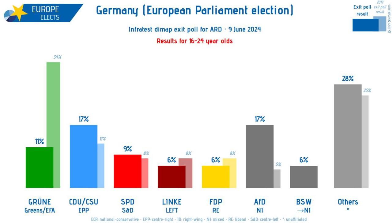 Цікаво, що Німеччині Зелені втратили підтримку молоді, а АфД навпаки її наростила. Голосуй за будь-яких радикалів в будь-якій незрозумілій ситуації 😂