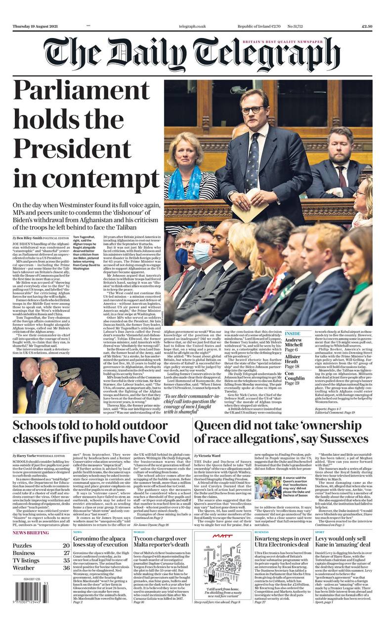 Байден зумів об‘єднати і правих, і лівих, і членів палати общин, і лордів Великобританії, коли обидві палати засудили президента США, назвали його рішення «катастрофічними», а його промову щодо Афганістану «безчестною» та «ганебною».