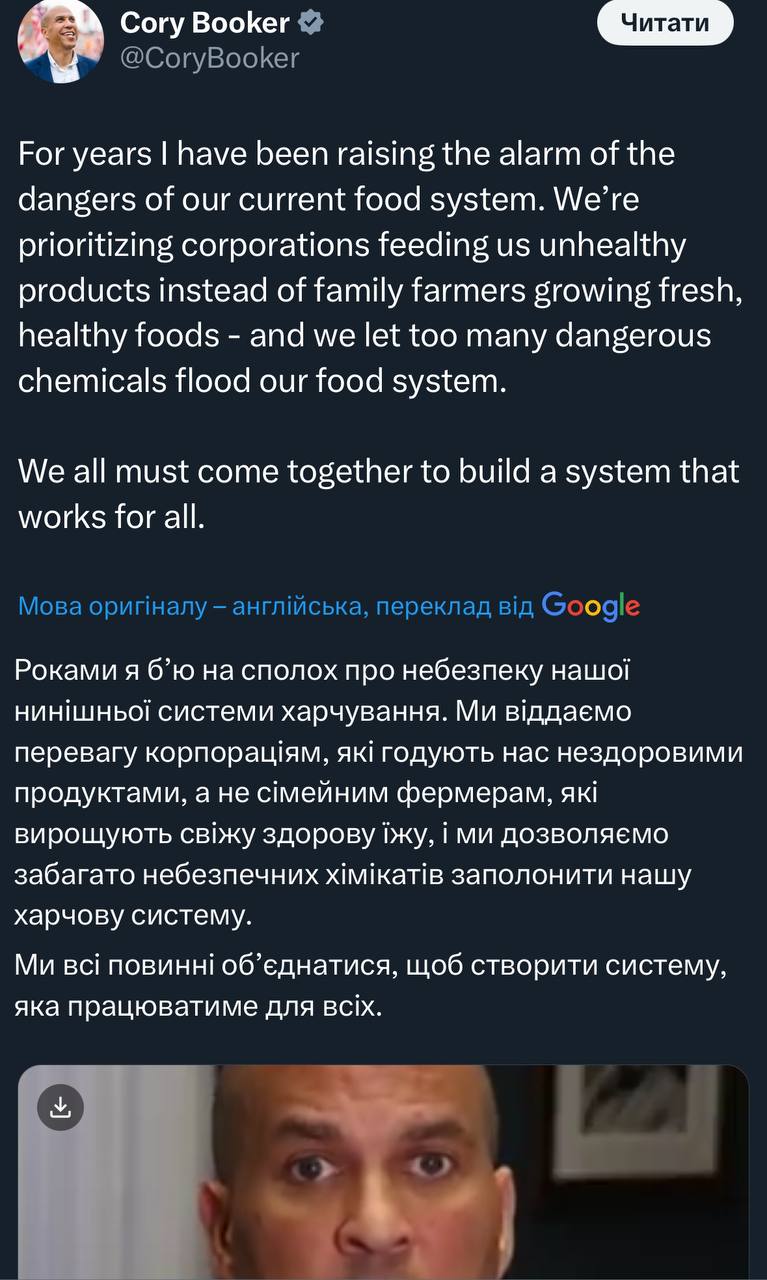 Сенатор від Нью-Джерсі демократ Корі Букер подає позитивні сигнали щодо призначення Роберта Кеннеді-мол. на посаду міністра охорони здоровʼя.
