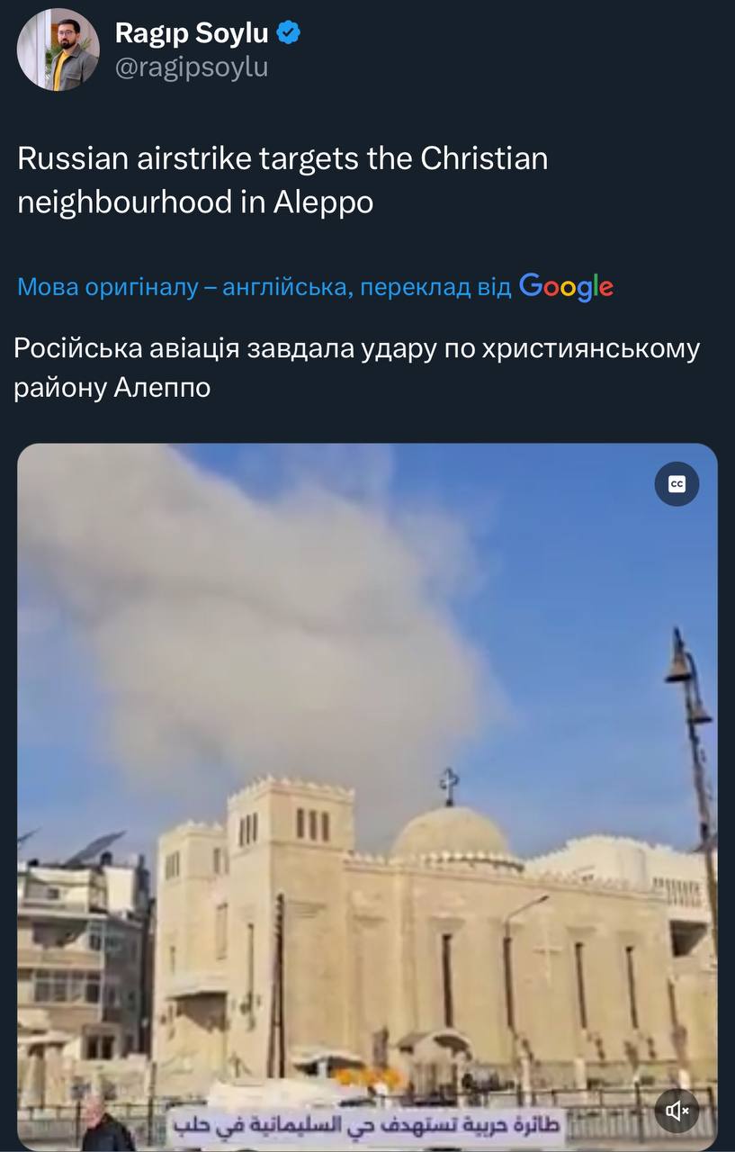 Росія обстріляла район Сулейманія - християнський район Алеппо. Авіабомби прилітали коло християнської церкви.