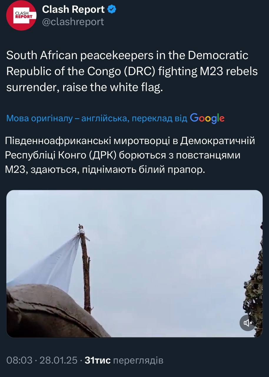 Нагадаю, що президент (автократ) ДР Конго Чісекеді вигнав кенійський військових, які стабілізували ситуацію і сказав, що тепер саме «ці хлопці» здобудуть перемогу і знищать повстанців 🤷♂️