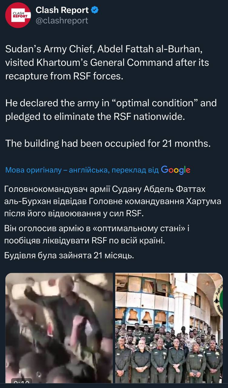 Аль-Бурхан та ЗС Судану - це ті, яких підтримує наше ГУР. RSF підтримують росіяни та Арабські Емірати.