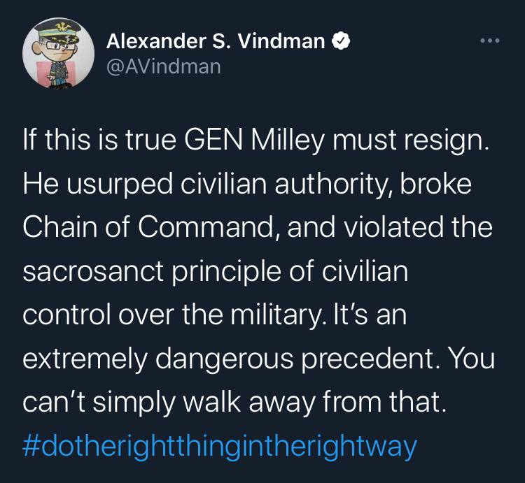 Навіть Віндман, який свідчив проти Трампа, вважає, що Генерал Переляк має підти у відставку.