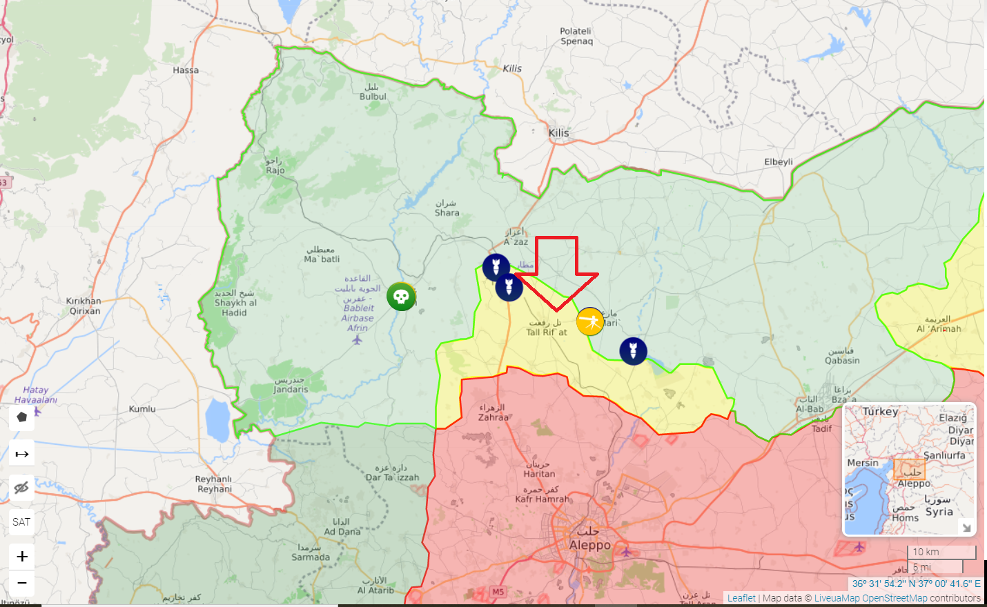 Схоже турки будуть вирішувати питання так званої "Таль-Ріфатської кишені" (на мапі).