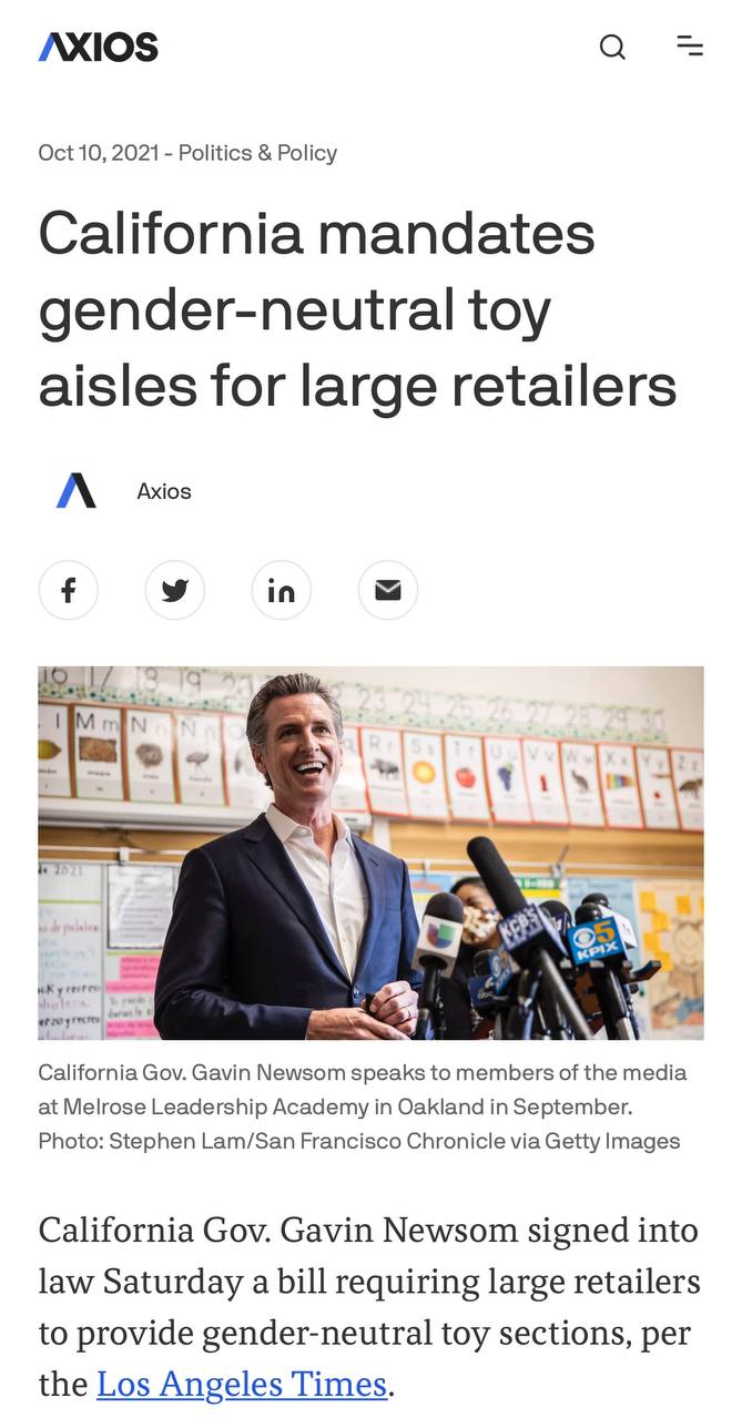 Комміфорнія зобов‘язала великих рітейлерів обов‘язково продавати «гендерно-нейтральні іграшки»
