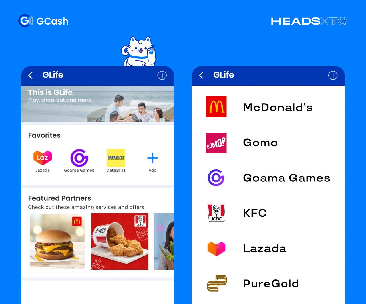 Среди них телеком-оператор GOMO, сеть магазинов Puregold, маркетплейс Lazada, фастфуды McDonald's и KFC и электронная компания Datablitz. Потребители оплачивают товары и услуги через внутреннюю платежную систему GCash, а поставщики отчисляют 2% от каждой сделки.