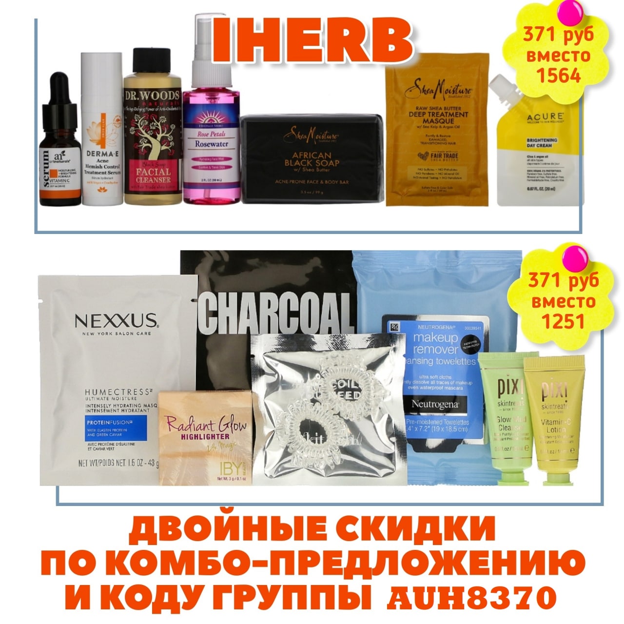 🍃 Все промокоды СУММИРУЮТСЯ кодом группы AUH8370, даст Вам дополнительную 5% скидку на весь заказ iHerb.