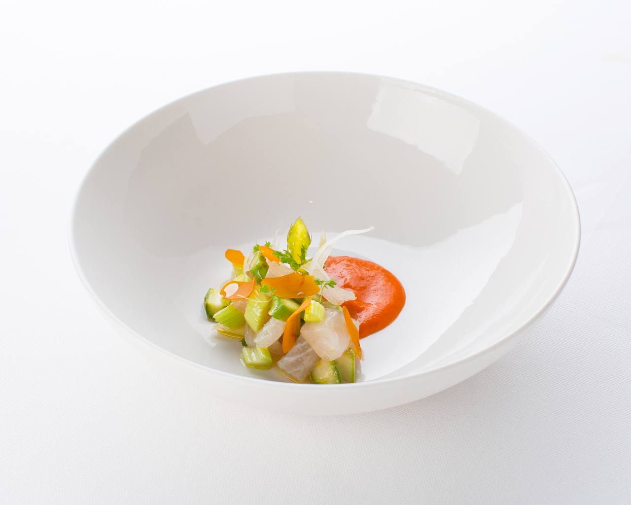 8. Перед подачей украсить блюдо слайсами боттарги, спаржи и фенхеля, далее полить блюдо оливковым маслом.