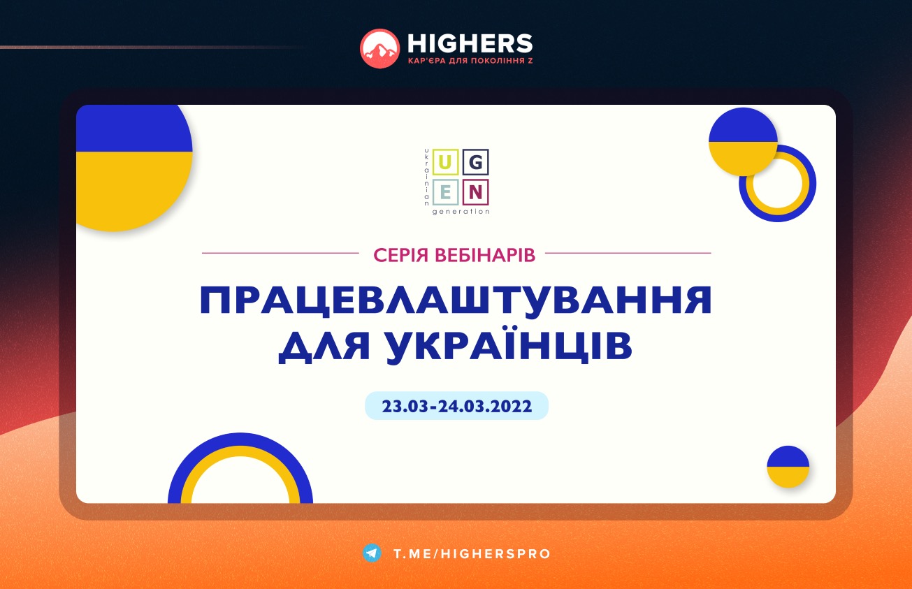 Команда UGEN разом з представниками EY, Genesis, SoftServe, Readdle проведуть серію профорієнтаційних вебінарів для підтримки українців, які були вимушені тимчасово переїхати до західних регіонів України чи за кордон 💛💙