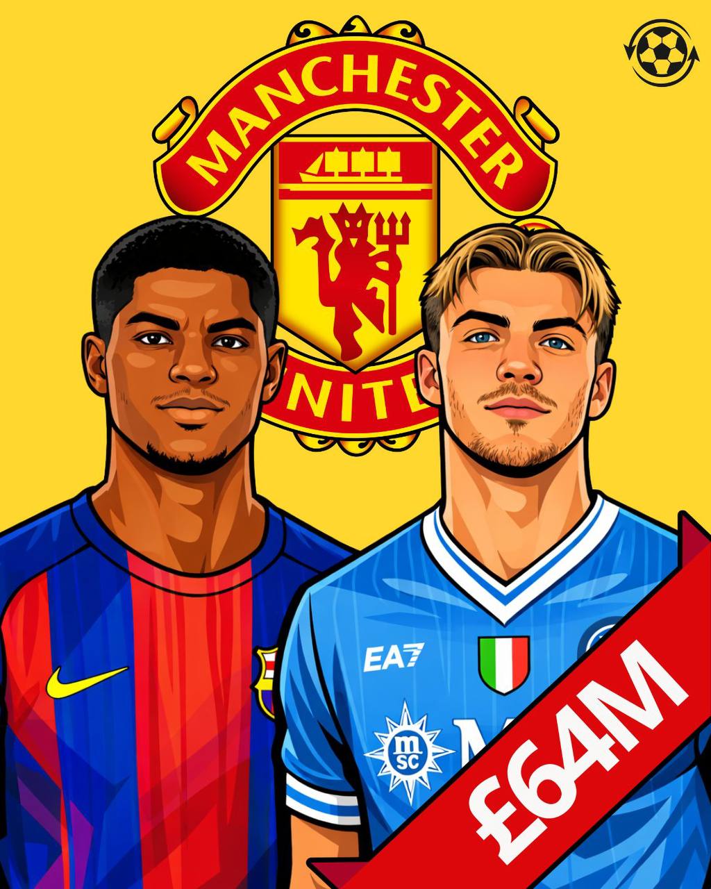 βπ¨ Manchester United are counting on receiving a total income of Β£64M once the loans of Rasmus HΓΈjlund and Marcus Rashford to Napoli and Barcelona are made permanent.