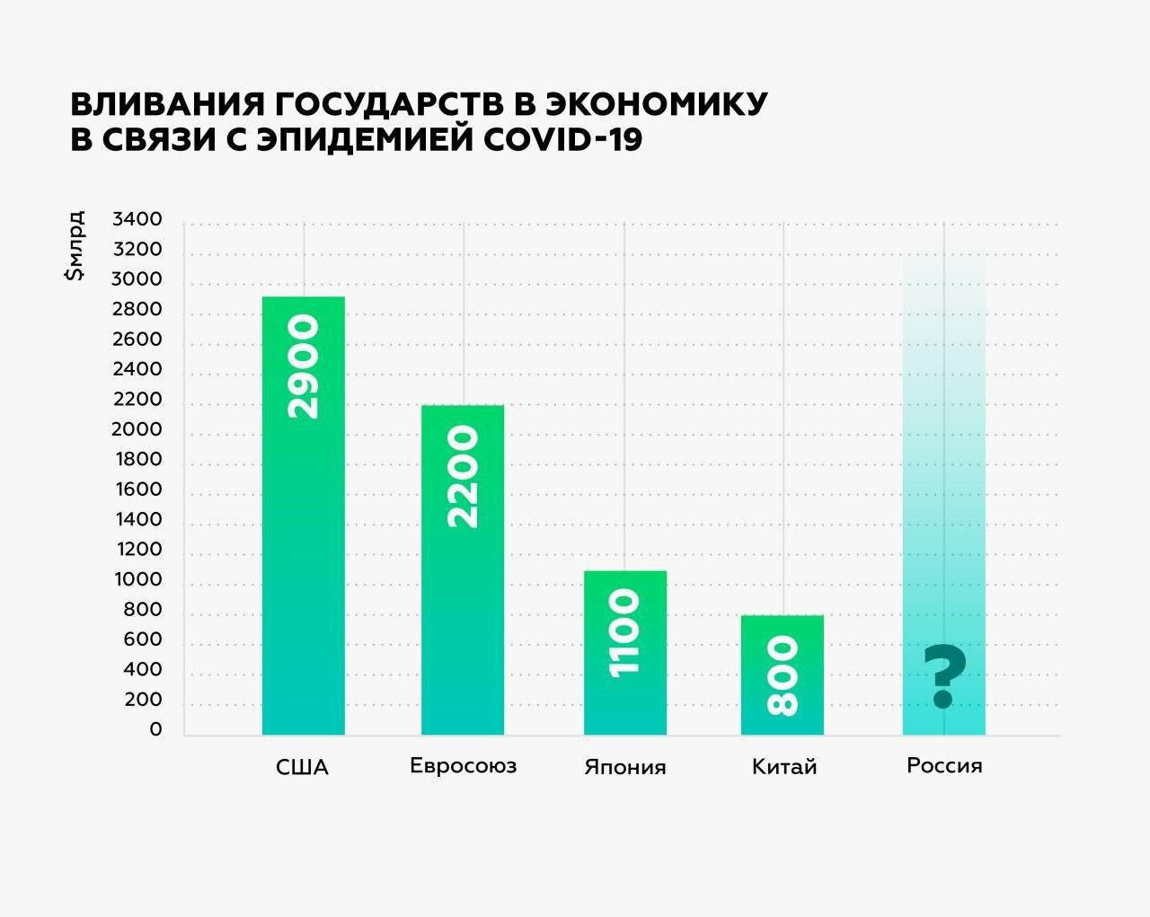 Искусственное дыхание, которое делают правительства государств собственным экономикам имеет несколько разных направлений. В США акцент делают на помощи гражданам (вертолетные деньги). И это логично в структуре экономики, где привыкли потреблять, а не производить. Раздача денег действительно увеличила спрос на гамбургеры, кока-колу и дешевую одежду. И увеличила их производство. Но даже там на эти цели ушло всего 1 $трлн.