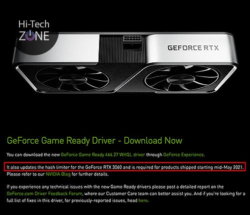В описании драйвера прямо указано на то, что в нем обновлен механизм ограничения производительности при добыче криптовалют при помощи GeForce RTX 3060, а само ПО предназначено для видеокарт, поставки которых начнутся в середине мая. Очевидно, речь идет о новых GeForce RTX 3060 на GPU GA106-302 c аппаратной защитой от майнинга. Дело в том, что у них новый номер PCI Device ID – 2504. И это новшество отражено и в драйвере. Таким образом, помимо внутренних аппаратных ограничений, у новых GeForce RTX 3060 есть и программное ограничение, установленное на уровне ПО. Новая GeForce RTX 3060 не будет работать со старыми драйверами, в которых ограничение производительности при добыче криптовалют или легко обходилось, или вовсе отсутствовало.