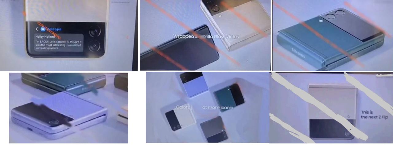 Данные скриншоты были получены из просочившегося рекламного видео грядущего телефона-раскладушки от южнокорейского бренда. На изображениях видно, что Galaxy Z Flip3 будет доступен в двухцветном исполнении. Верхняя часть, в которой расположена вертикальная двойная камера, и внешний дисплей выделены черным цветом, а нижняя часть имеет разные цвета. Ожидается, что смартфон будет доступен в таких цветах, как фиолетовый, зеленый, черный, бежевый, серый, белый, темно-синий и розовый.