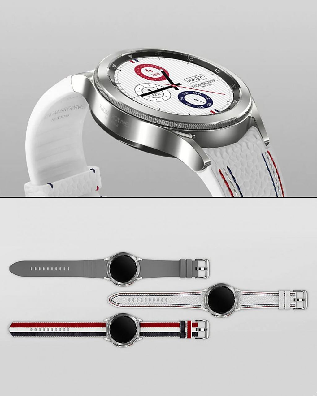 Люксовая версия часов впервые продаётся отдельно от смартфонов серии Thom Browne Edition. В комплекте поставляется кожаный, силиконовый и тканевый ремешок. Также покупатели получат пять эксклюзивных циферблатов Thom Browne.