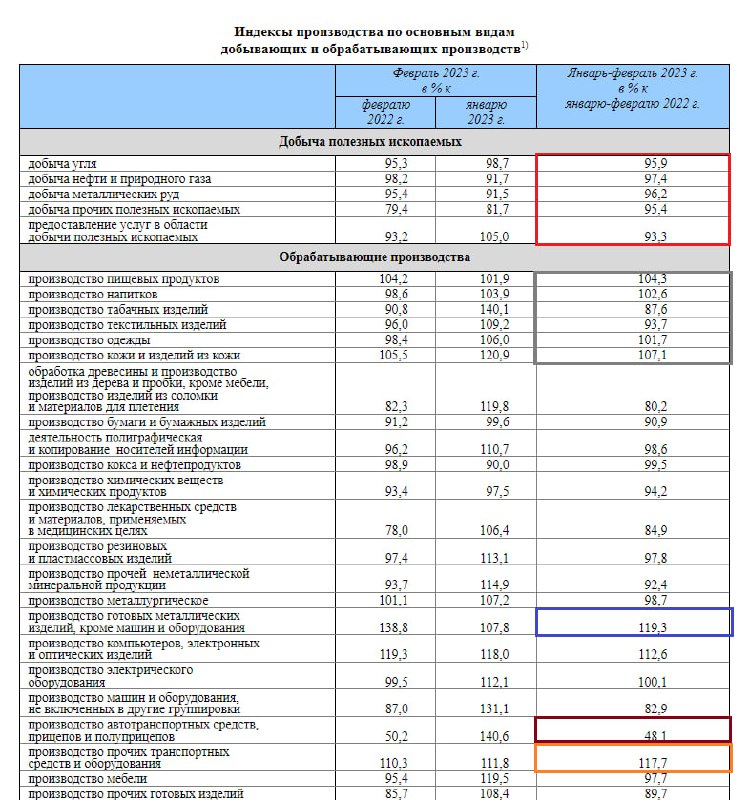 Росстат опубликовал свежую статистику промышленности & делового климата за февраль. На что мы обратили внимание, сравнивая индексы января-февраля 2023 в сравнении с январем-февралем 2022: