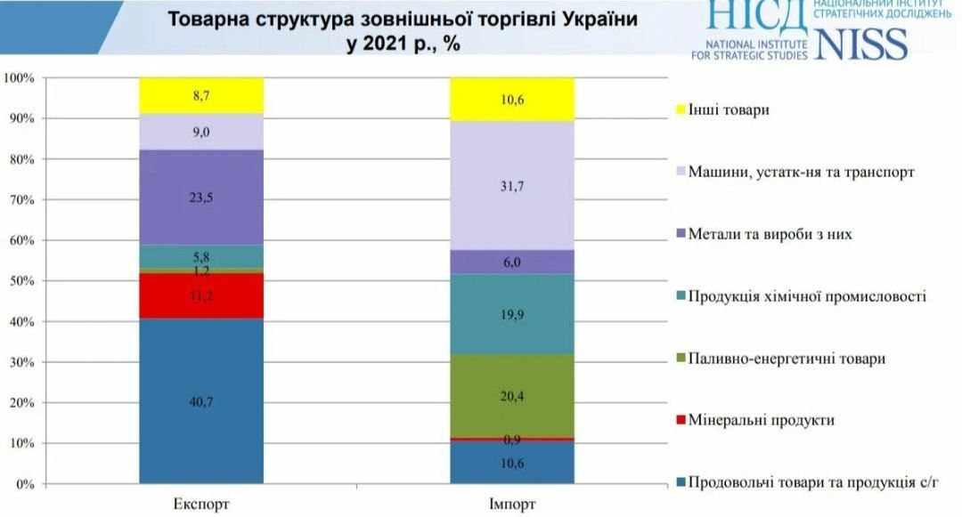 - Для продления конфликта необходима валюта. До СВО продовольственная статья составляла почти половину от общего объема экспорта Украины