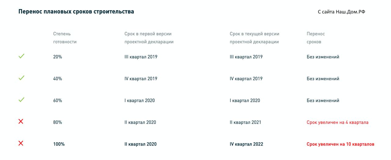 p.s. Кстати, ЖК строится без эскроу счетов, но с гарантиями федерального Фонда дольщиков, т.е. застройщик отчисляет некую гарантийную сумму от каждого ДДУ. Зашла на сайт Единой инф системы жилищного строительства. Нашла еще вот такую информацию, на приложенном рисунке. Так на сколько в реальности все-таки переносится строительство?