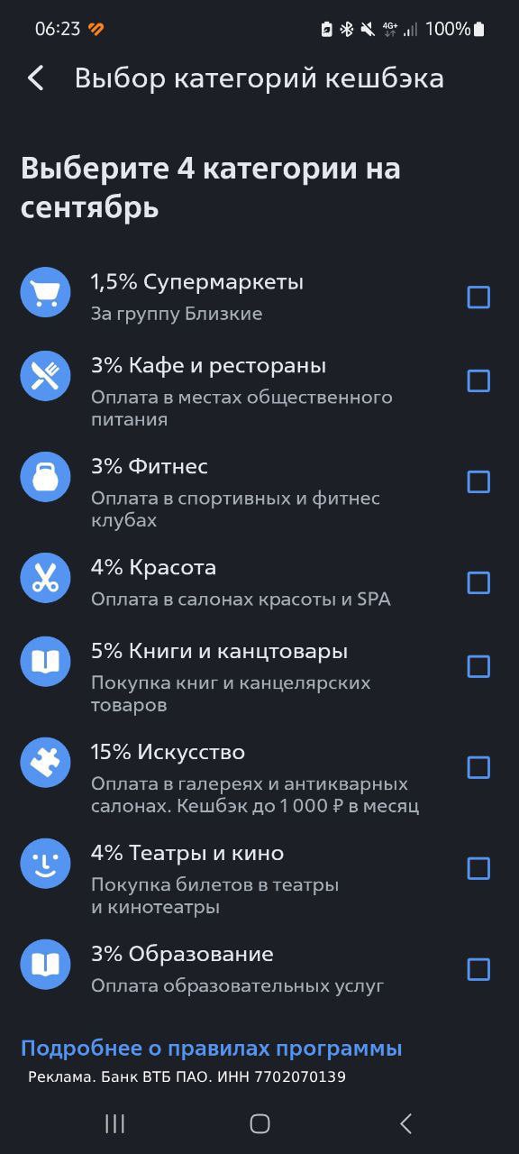 Выбираем категории повышенного кэшбэка в "ВТБ" на сентябрь.