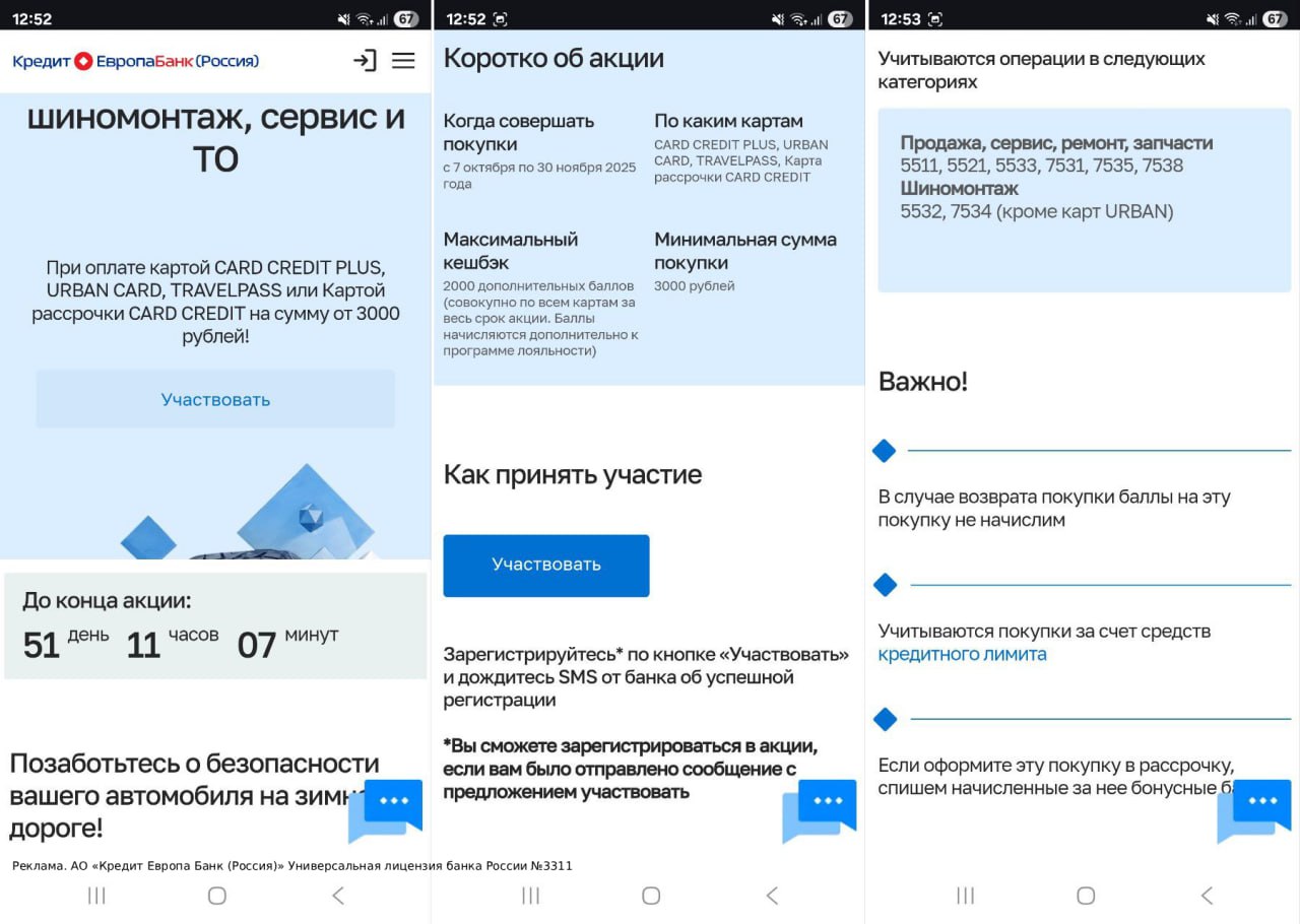 С 01.10.25 в акции могут участвовать в том числе и владельцы других продуктов банка (дебетовых карт, НС, кредитов, депозитов), а также те, у кого минимум 12 месяцев нет кредитки банка, подробные условия тут.