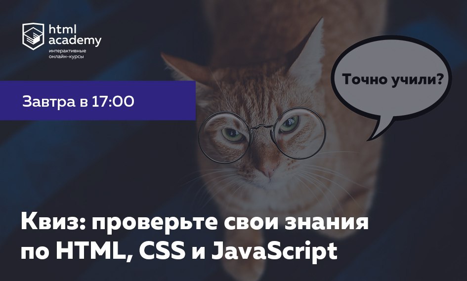 Такое уже было, всем понравилось и мы решили повторить. Квиз по HTML, CSS и JavaScript завтра в 17:00 по московскому времени 🎉