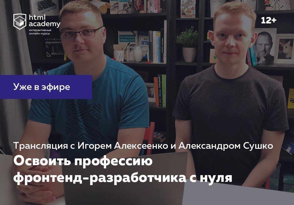 HTML Academy pinned «Хотите освоить профессию фронтенд-разработчика с нуля? 24 июля в 19:00 по московскому времени в прямом эфире расскажем, как это сделать. Запишитесь, чтобы не пропустить трансляцию. Игорь Алексеенко, автор и преподаватель курсов, и Александр Сушко, опытный…»