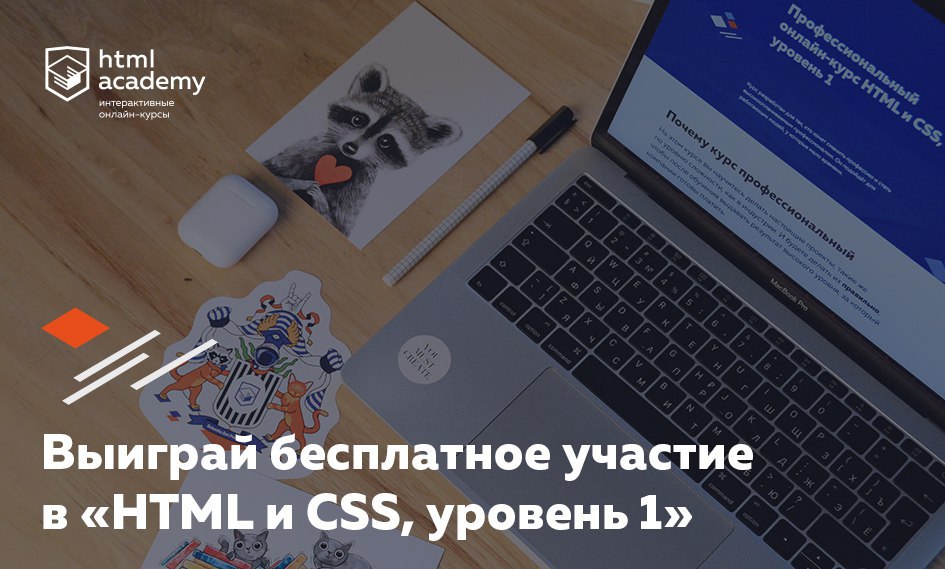Во «Вконтакте» разыгрываем бесплатное участие в курсе «HTML и CSS, уровень 1», который пройдёт со 2 сентября по 3 ноября.