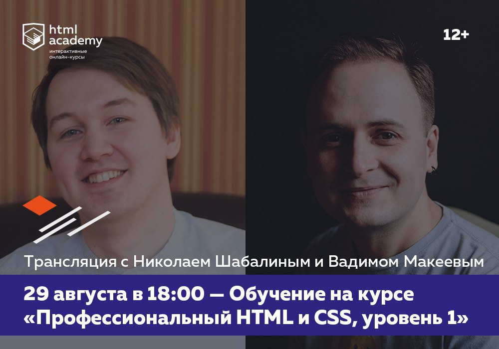 29 августа в 18:00 по московскому времени Вадим Макеев и Коля Шабалин, авторы и преподаватели курса, проведут лайв об обучении на «HTML и CSS, уровень 1».