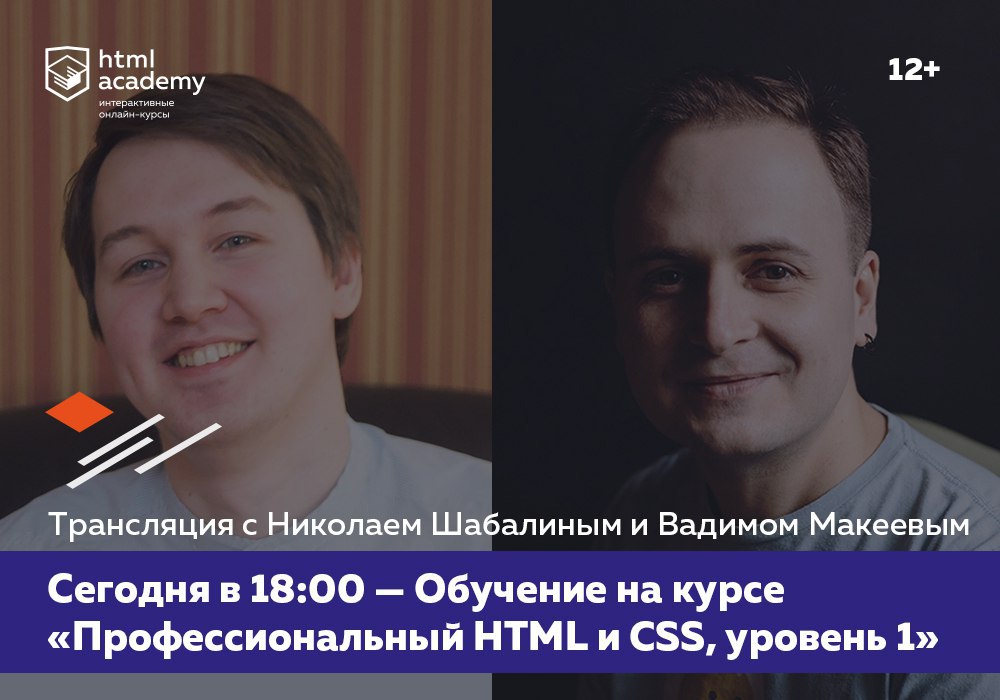Напомним, что уже сегодня в 18:00 по московскому времени Вадим Макеев и Коля Шабалин, авторы и преподаватели «HTML и CSS, уровень 1», проведут трансляцию об обучении на курсе.