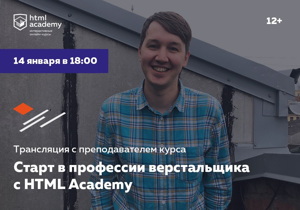 Завтра в 18:00 по московскому времени Николай Шабалин, автор и преподаватель курса «HTML и CSS, уровень 1», в прямом эфире расскажет про обучение в HTML Academy.