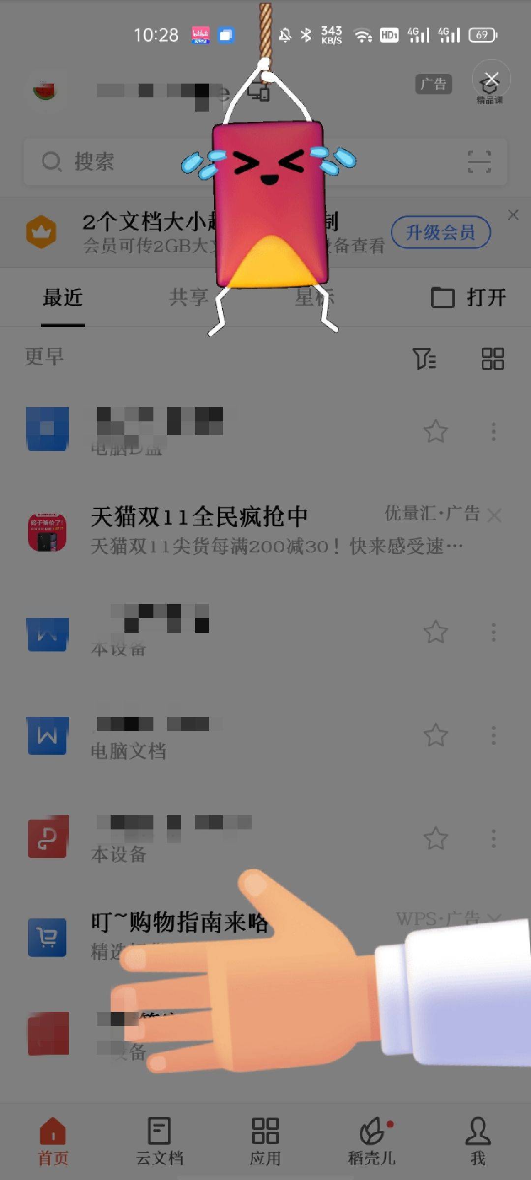 划拉划拉找文档,一个不小心点到夹杂在文件列表里的广告