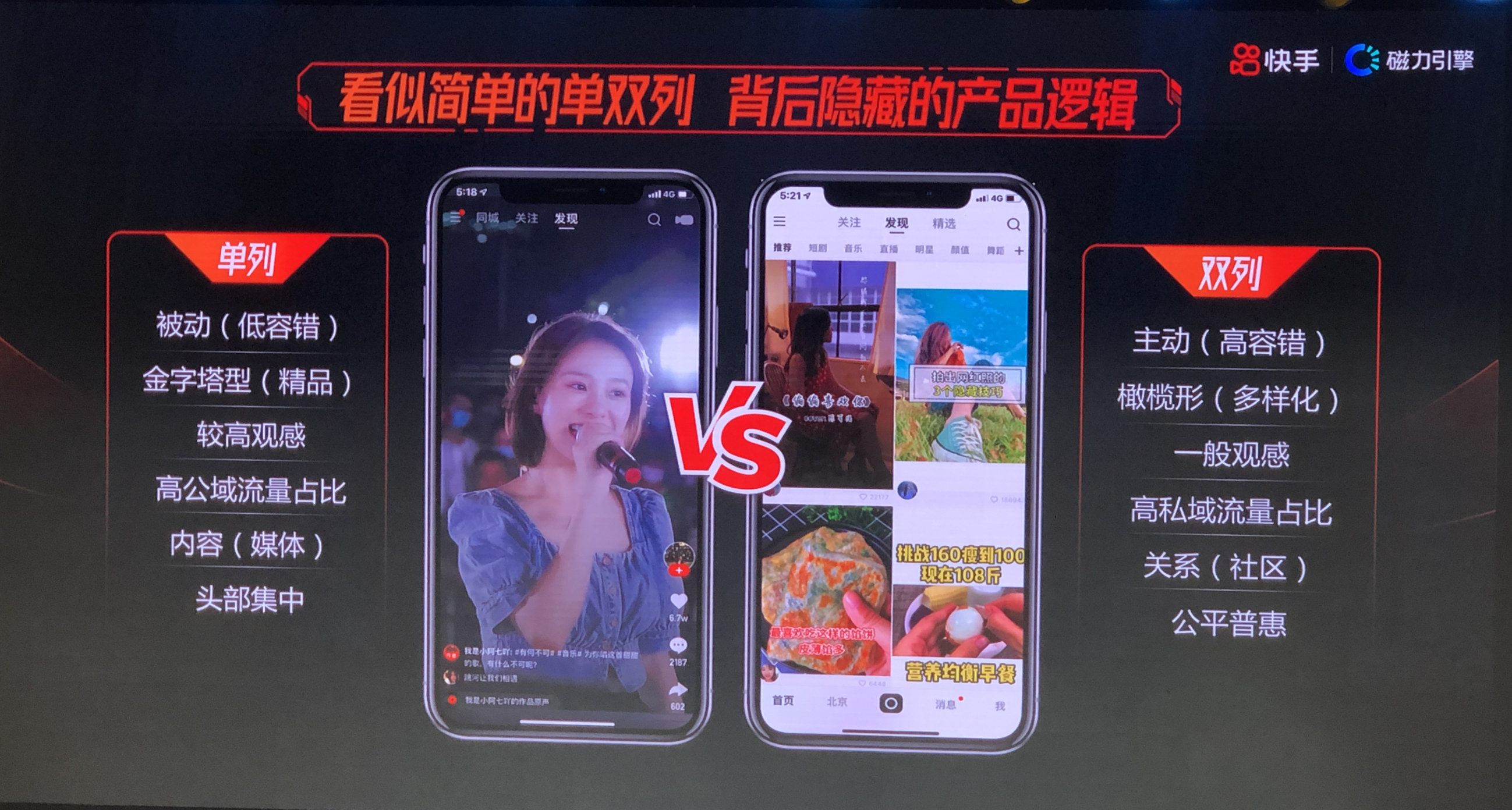 「快手的双列展示」,是把流量的控制权交给了用户,这样用户就在自己选的达人身上投入更多时间,形成信任变老铁;而抖音「沉浸式」的单列,把流量控制权掌握在自己手里,通过推荐算法控制定位推送给平台想要推送的人群,用户会有不断的「下一个」,也就不会投入更多信任给达人。
