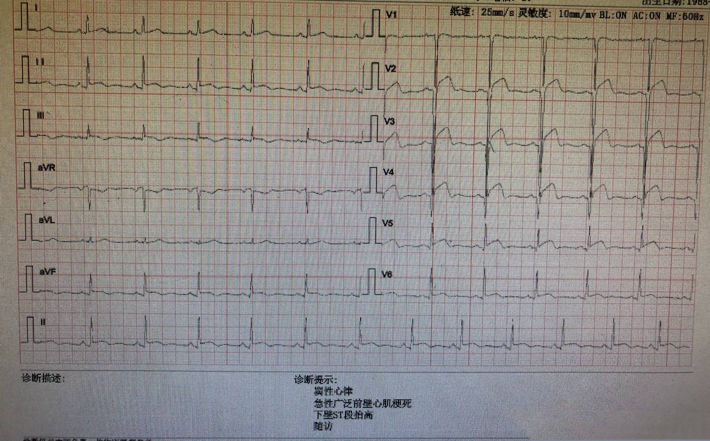 一中年女性,32岁,系“突发胸痛6小时”入院,心电图提示:急性前壁心肌梗死,诊断ST段抬高型急性前壁心肌梗死(冠状动脉壁间血肿),立即予以急诊冠脉造影手术,术中发现冠脉前降支中段壁间水肿伴狭窄,术后入住EICU监护,目前生命体征平稳。
