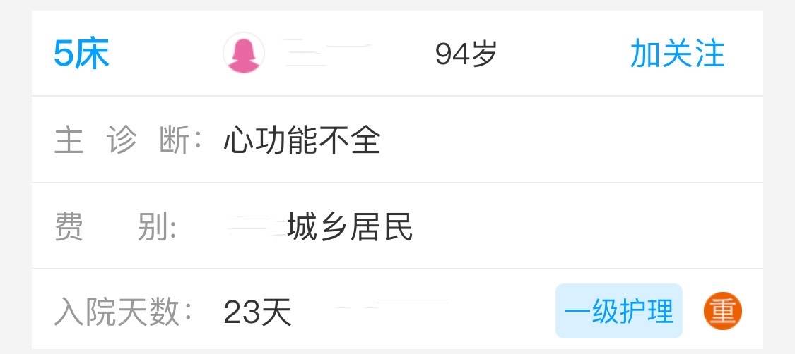 入院第一天,老太太情况差,像花蔫了一样,与其对话,无法应答。