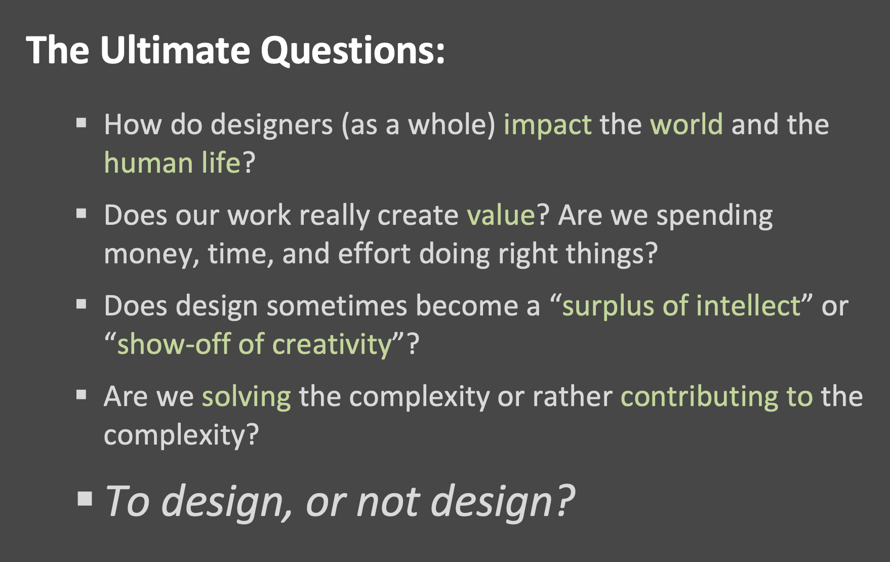 Alex 在做 Musical.ly 和 Tik Tok之前的一个 PPT 分享里,发出了 to design or not design 的灵魂拷问,带了四个问题。